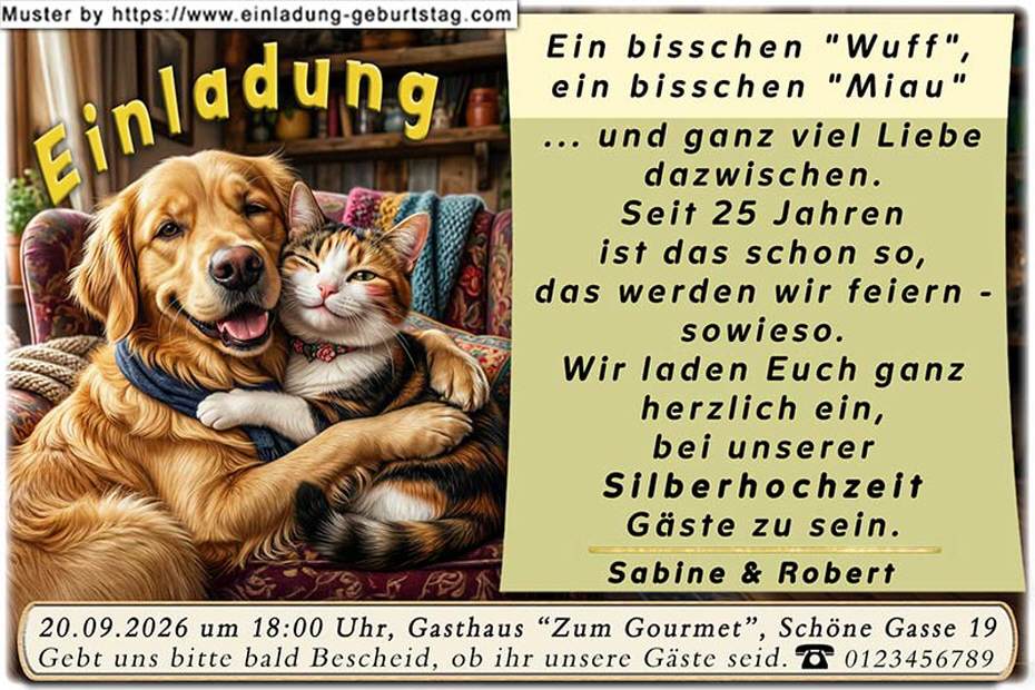 lustige Einladung Silberhochzeit - Hund & Katze