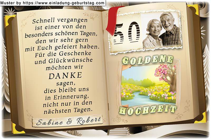 Ihr Foto wird mit einer Sepia Farbüberlagerung versehen und oben rechts in ein Buch eingesetzt. Daneben wird Ihre Jubiläumszahl gedruckt. Ihr Danksagungstext und Ihre Namen befinden sich auf der linken Buchseite.