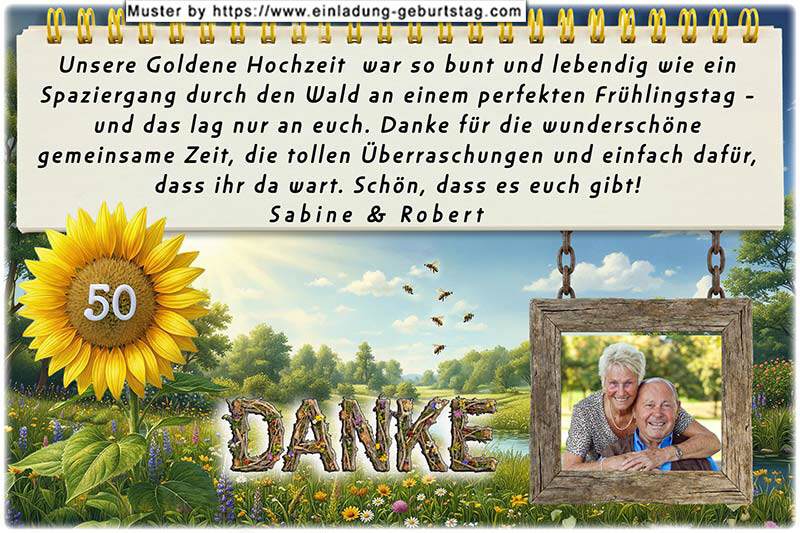 Ihr Foto wird in den rustikalen Holzrahmen eingesetzt, der am Textfeld hängt. In die Sonnenblume wird Ihre Jubiläumszahl gedruckt.