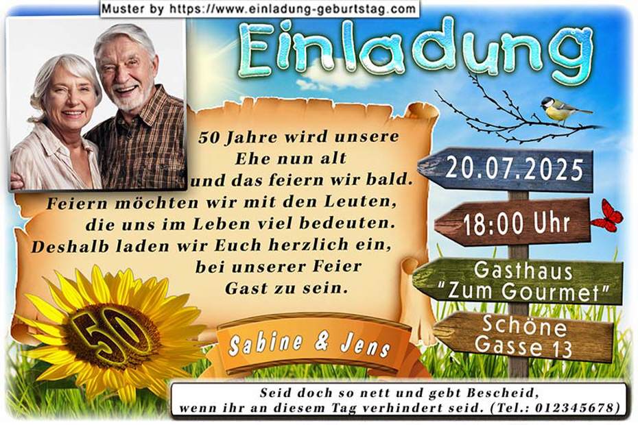 Einladung Goldene Hochzeit Foto vor Blumenwiese