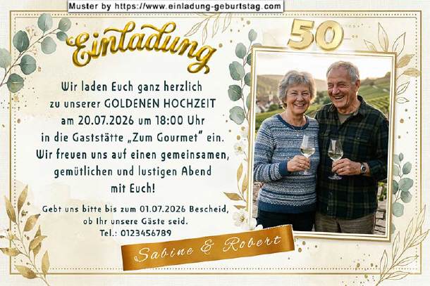 Einladung Goldene Hochzeit Foto neben Text