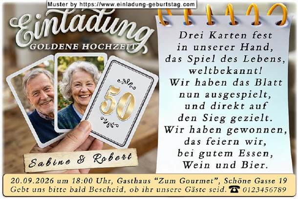 Einladung Goldene Hochzeit Fotos auf Spielkarten