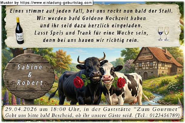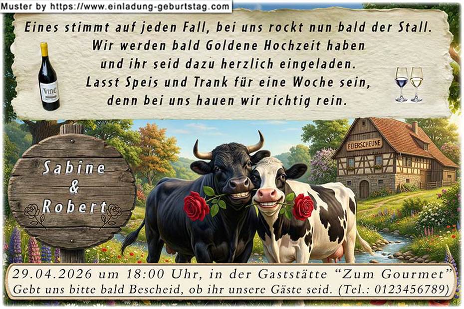 lustige Einladung Goldene Hochzeit - Kuh und Bulle