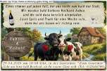 Kuh und Bulle freuen sich auf die gemeinsame Goldene Hochzeitsfeier. Ihre Namen werden auf den Wegweiser gedruckt.