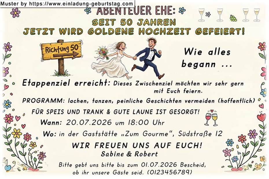 Einladung Goldene Hochzeit - Abenteuer Ehe