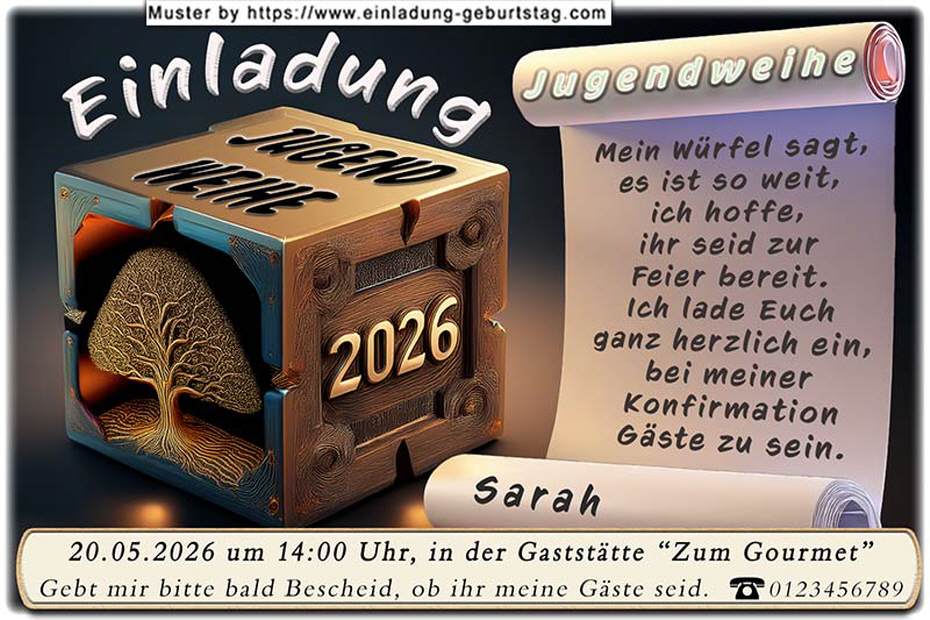 Du wünschst ein Vorschaubild dieser Einladungskarte mit deinen Angaben ohne gleich eine Bestellung aufzugeben - hier kannst du es unverbindlich anfordern und nach dem Erhalt selbst entscheiden, ob du diese Karten bestellen möchtest.