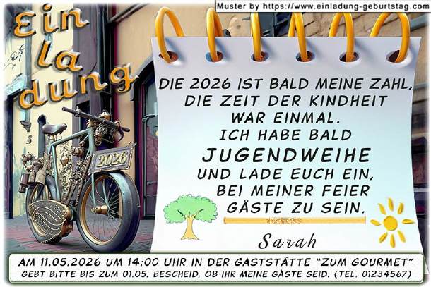 Einladung Jugendweihe - das Fahrrad