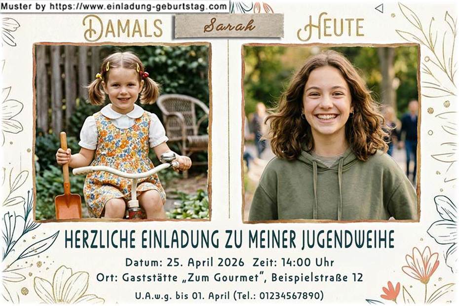 Einladung Jugendweihe mit Foto - Damals - Heute