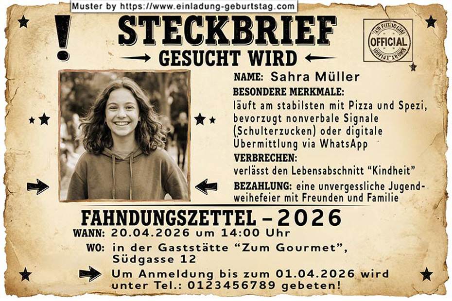 Gesucht wird … dein Foto wird mit einer Sepia Farbüberlagerung versehen, quadratisch zugeschnitten und in den Steckbrief eingesetzt.