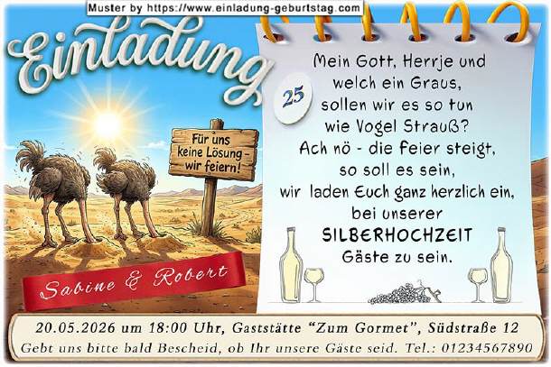 lustige Einladung Silberhochzeit - Vogel Strauß
