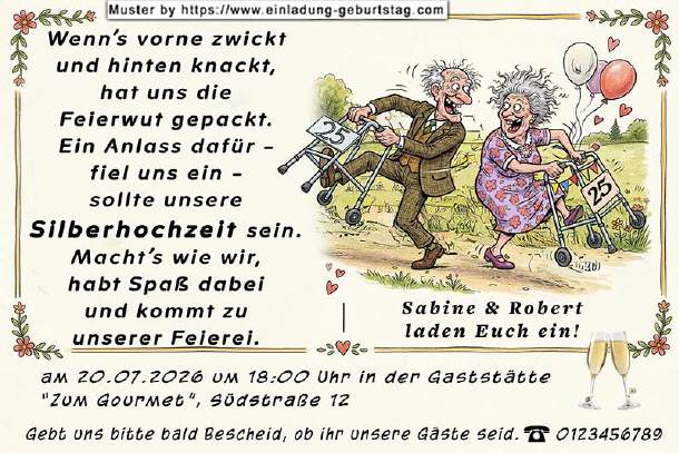 die lustige Einladungskarte zur Silberhochzeit